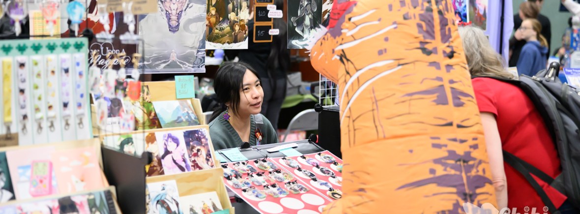 We define “vendors” as merchants conducting mostly resale, in that they have personally made or designed 20% or less of their stock. Examples: local comic or anime stores tabling at CCC, artists’ guilds selling mostly the work of artists not present, or publishers. We define “artists” as merchants who have personally made or designed 80% or more of their stock. Please apply for the appropriate category according to these definitions–our review processes for artists and vendors are designed around these definitions, and if miscategorized you may receive poor panel review results.